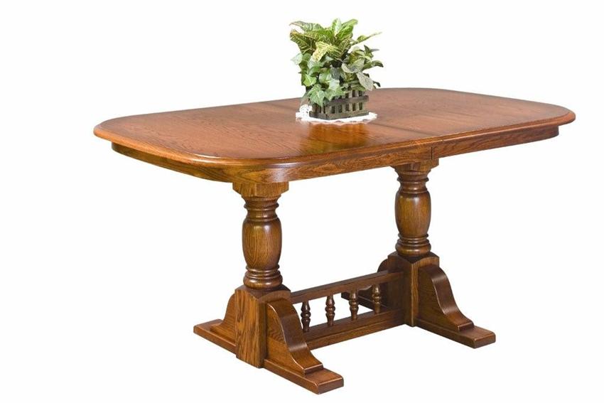 Amish Oak Double Pedestal Dining Table - Amish Home Furnishings - Amish Furniture in Daytona Beach ... : Home / products / dining / solid oak tables / double pedestal dining table w/2 18 leaves, board trestle w/ empire feet, plain apron solid oak tables all category. Choose an option 42 x 54 with 2 leaves. With a traditional design, bold yet graceful curved lines, and numerous size options; Because our builders fashion elegant bowed ends. We take a great deal of pride in helping to preserve the tradition of fine early american craftsmanship. The traditional double pedestal extension dining table is made of solid hardwoods.