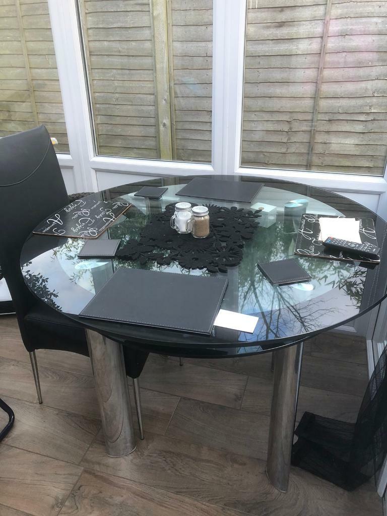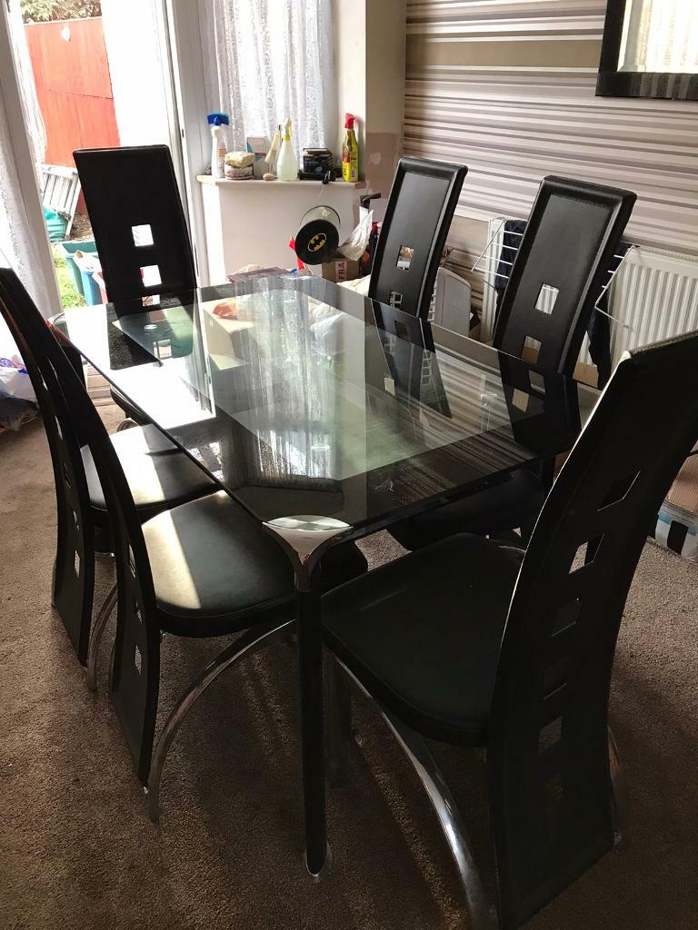 Glass Dining Table In Slough Berkshire Gumtree from i.ebayimg.com Don't let your table get the wrong kind of attention, upgrade your dining experience with montreal dining suite 6 seater. We have moved to smaller premises and it simply is too large. Table is indonesian length 2.4 metres. All in very good condition. Chairs are 88cm high with seating depth of 40cm. Our dining sets also give you comfort and durability in a big choice of styles. Your feedback is valuable to us as it helps us improve gumtree. With 4 white faux leather chairs, dismantled for collection only from whinmoor, leeds £75.